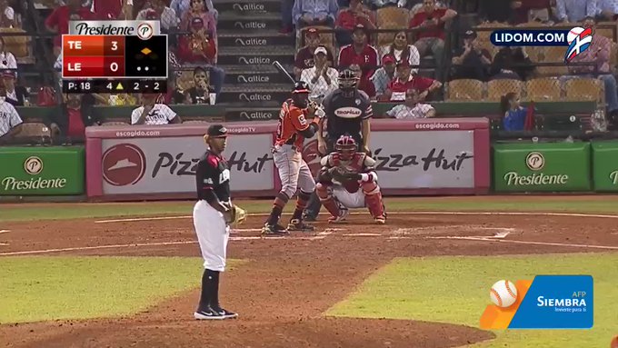 El partido se mantuvo sin anotaciones hasta el tercer episodio cuando Anderson Feliz recibió transferencia. Seguido de Jorge Mateo, quien tocó y llegó quieto en la inicial. Después de un out, y en conteo de 3-2, Jordany Valdespín disparó un cañonazo por el jardín izquierdo, que limpió las almohadillas para anclar en la antesala.